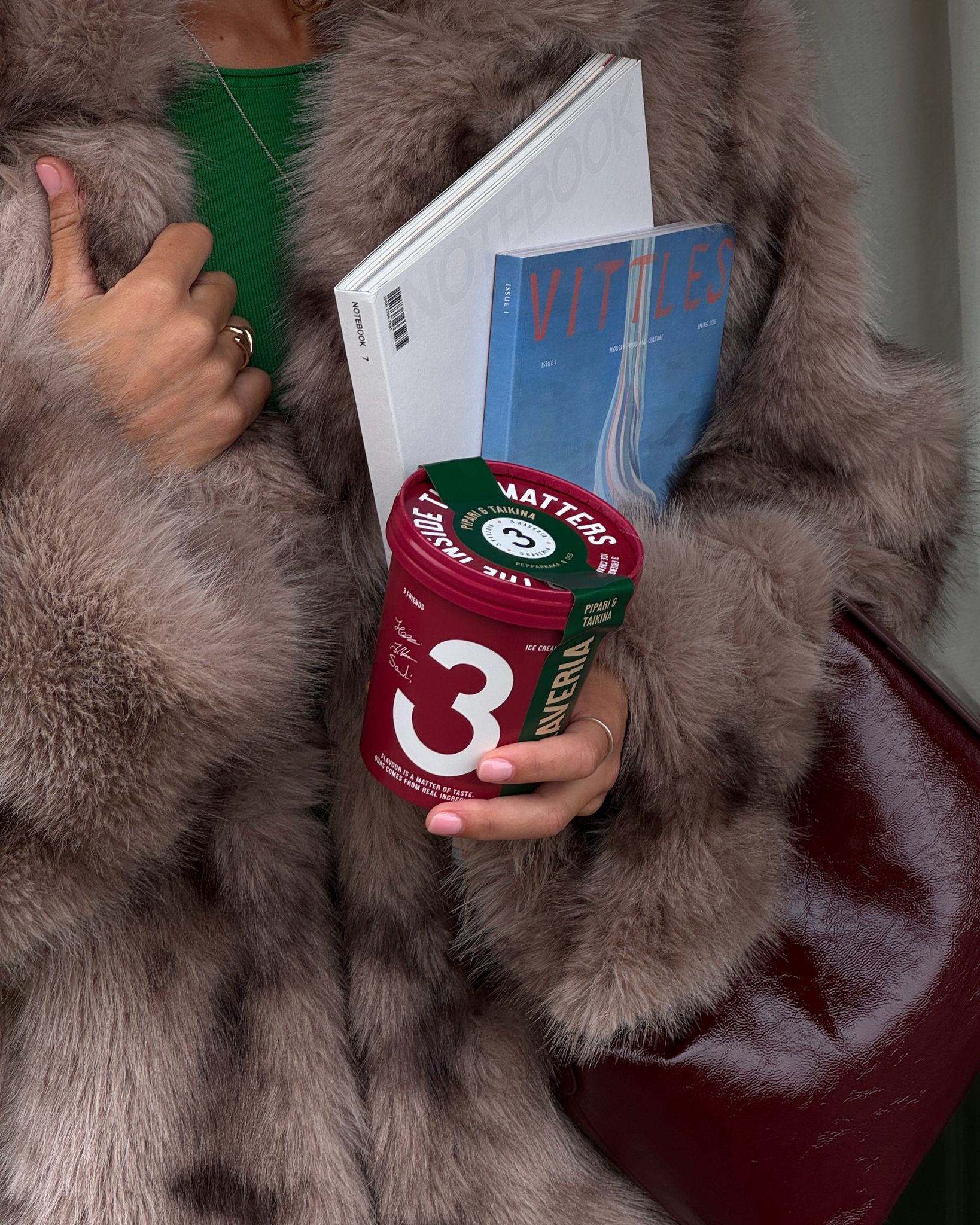 For the Christmas season, 3 Kaveria wanted to dress its ice cream in a festive look without losing the brand’s bold, graphic edge. 3 Kaveria approached Kuudes with a challenge: how to create a seasonal look for limited-edition flavors that evokes warmth, indulgence, and festive cheer, while remaining instantly recognizable and unmistakably modern—true to 3 Kaveria’s distinctive character?