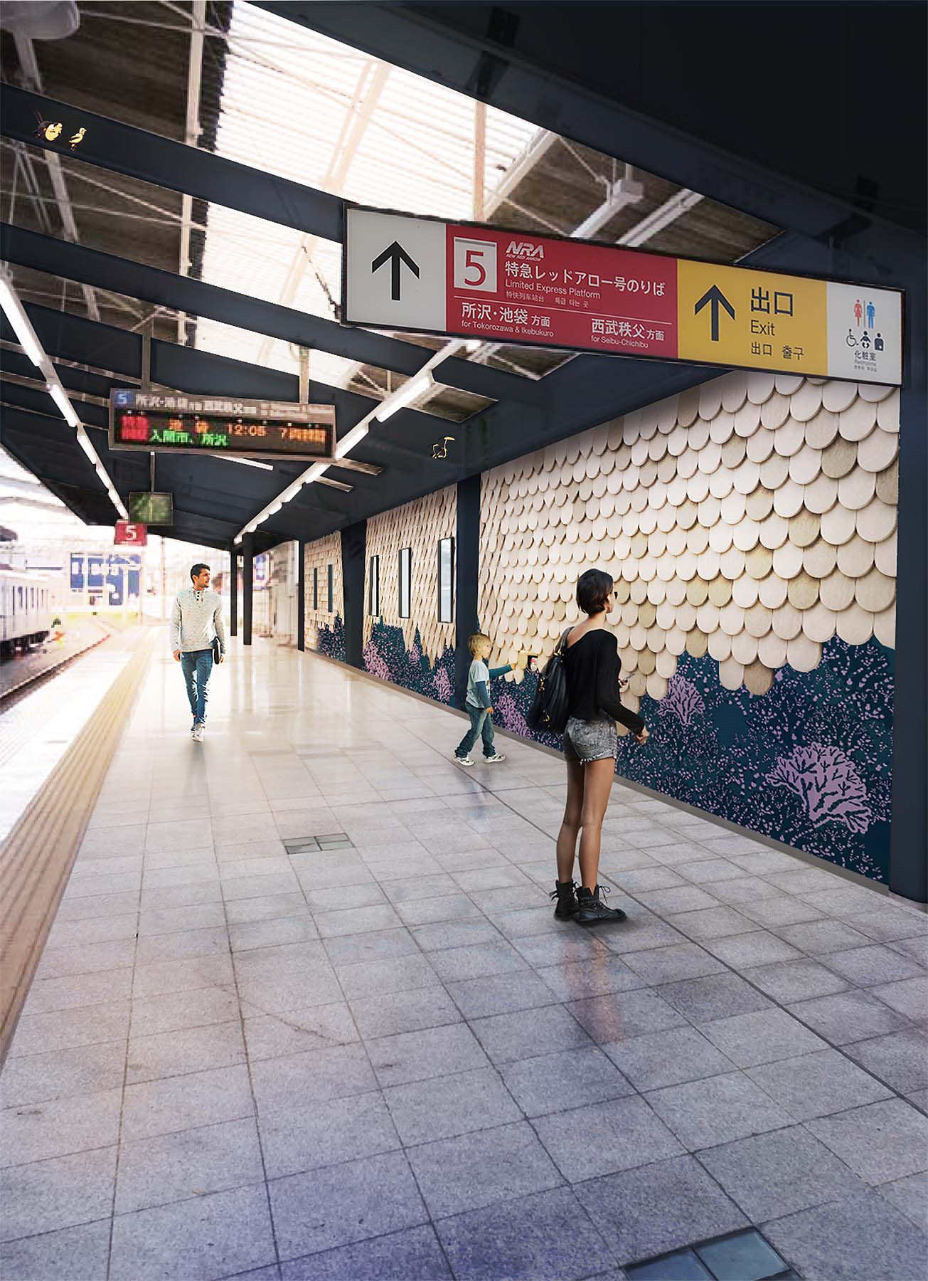 Seibu Group, a Japanese railway company, launched a competition to renovate the Hanno railway station close to Lake Miyazawa. Quite recently, the lakeside had become the home of a Moomin theme park, Metsä (Finnish for Forest), so they were looking for a partner to transform this transit hub into a unique site celebrating Nordic design with a touch of fantasy.